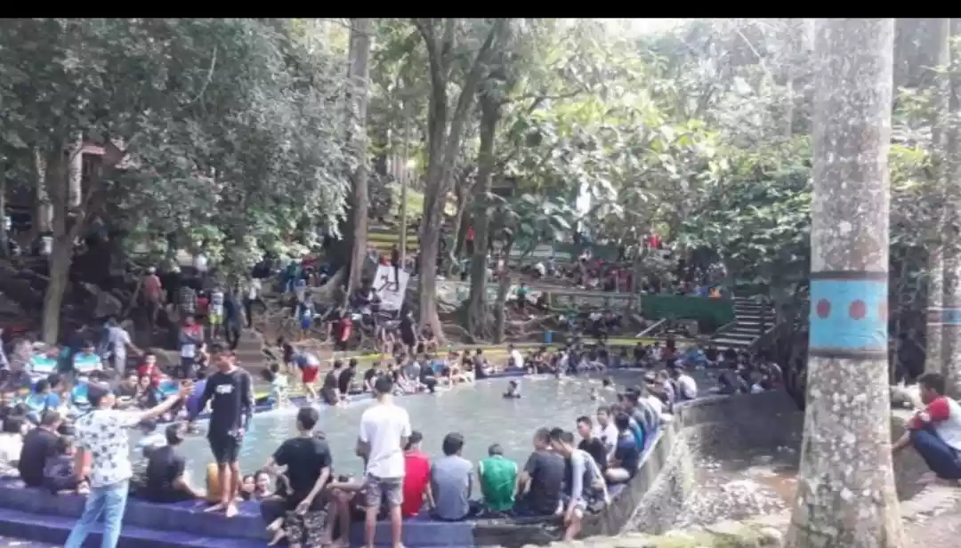 Kepadatan pengunjung tidak hanya terlihat di area kolam pemandian, tetapi juga pada akses masuk dan lokasi parkir. Tercatat sebanyak 513 kendaraan roda dua dan 465 kendaraan roda empat memadati kawasan wisata sepanjang hari.